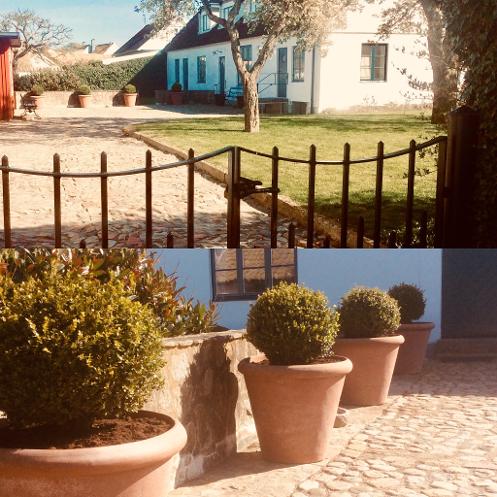 Italiensk terracotta och buxbom, privatträdgård Dr Ahlströms gata  -  Torekov